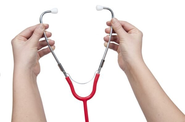 Includes stethoscope with diaphragm only chestpiece, adjustable binaurals, and (1) set of white firm threaded PVC eartips